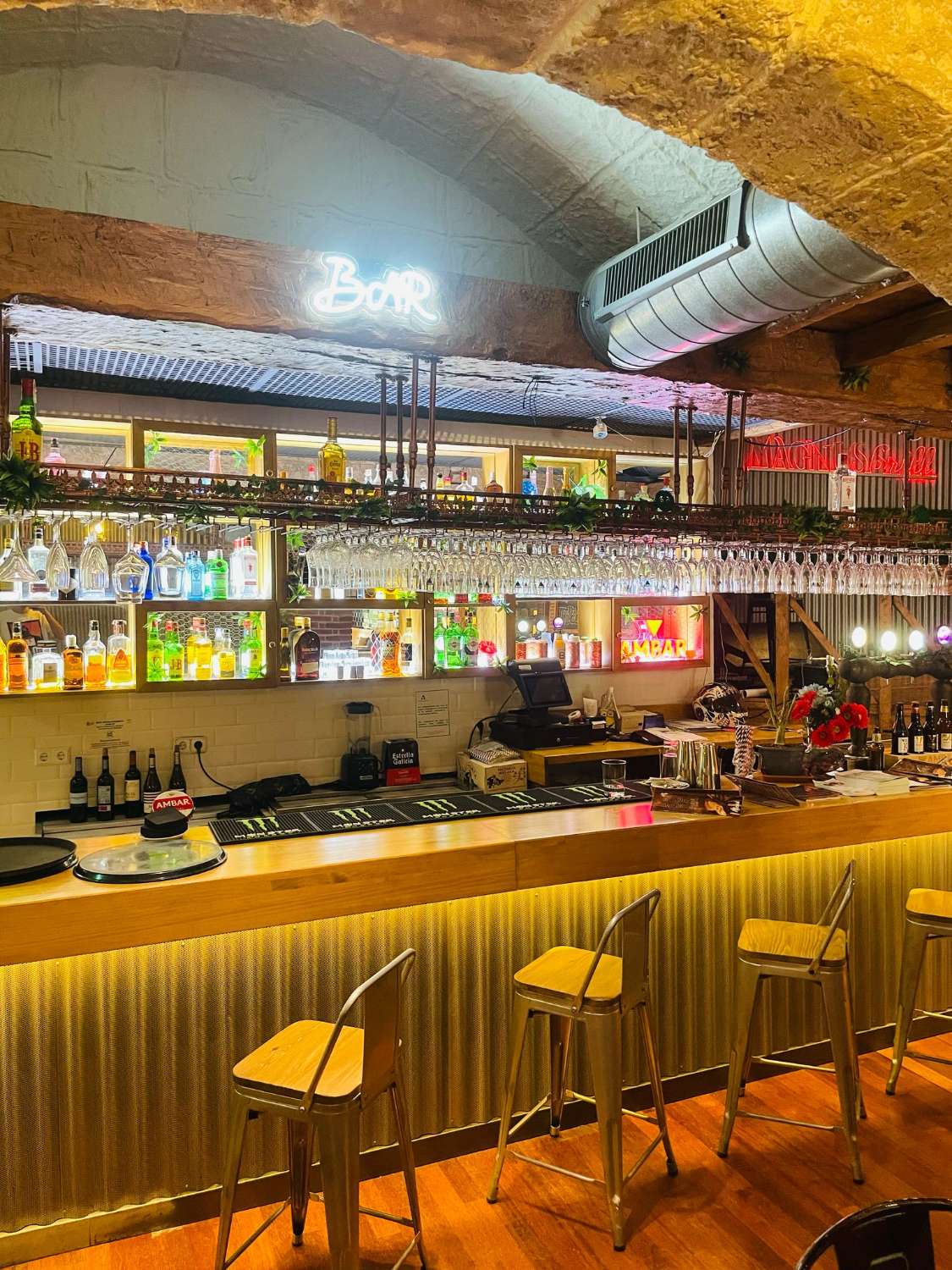 Alquiler Restaurante en Benalmadena - 250 m2 - se alquila sin maquinaria - El local tiene saida de humos ha estado trabajando hasta hace mu poco tiempo como Restaurante, tiene suelos de madera, 2 barras, cuartos de baño, instalacion electrica , y el estado general es excelente - El restaurante no incluye ni mesas ni sillas no maquinaria de cocina ni neveras -