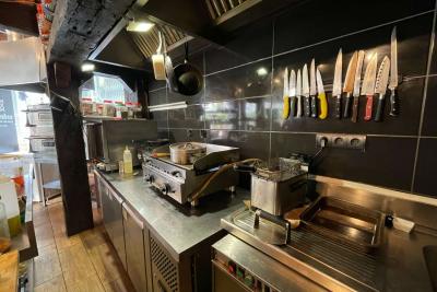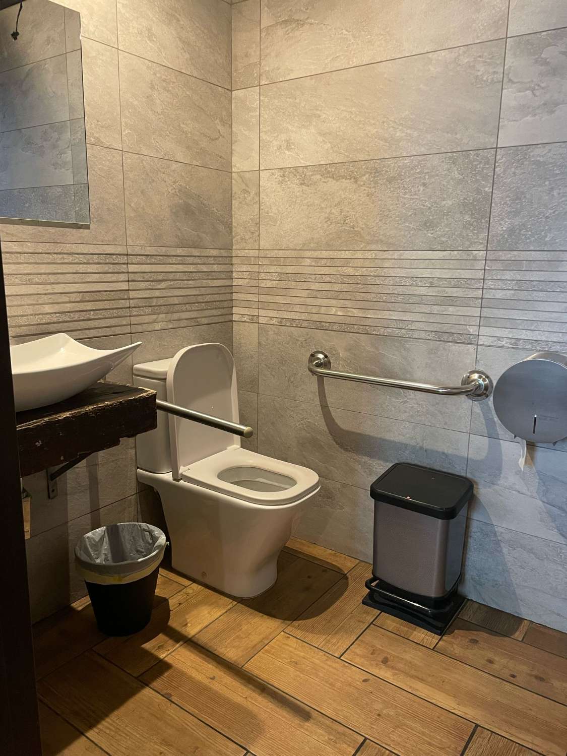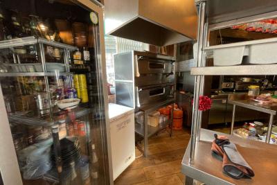 En la parte trasera del local hay 2 aseos, también una cocina comercial que está totalmente equipada hacer muy feliz a cualquier cocinero de trabajar en ella.
