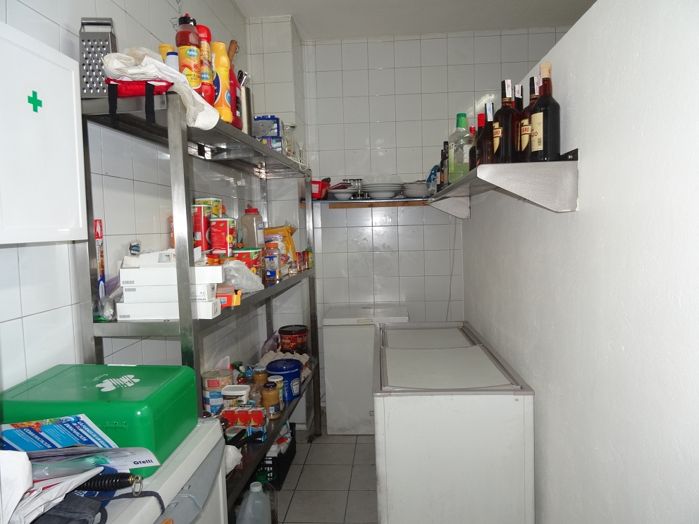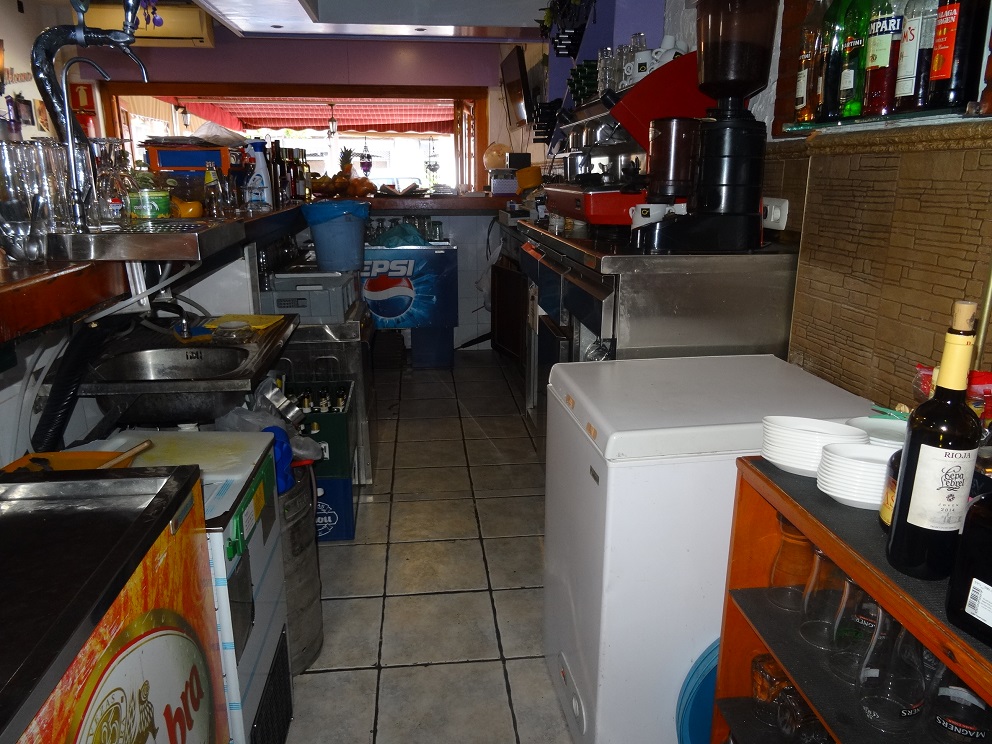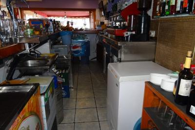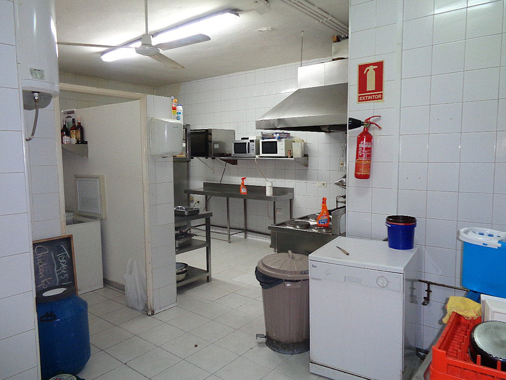 Achter de bar is er een grote kitchenette, met rookextractie en Cafetaria Opening License (bar met keuken).