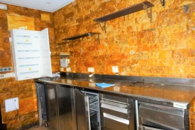 Binnen is er een afgesloten ruimte met rookafzuiging die eerder werd gebruikt als steakhouse en kippen met afhaalmaaltijden. De keuken is ruim en comfortabel, heeft een grote rookafzuigkap.