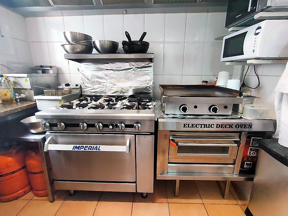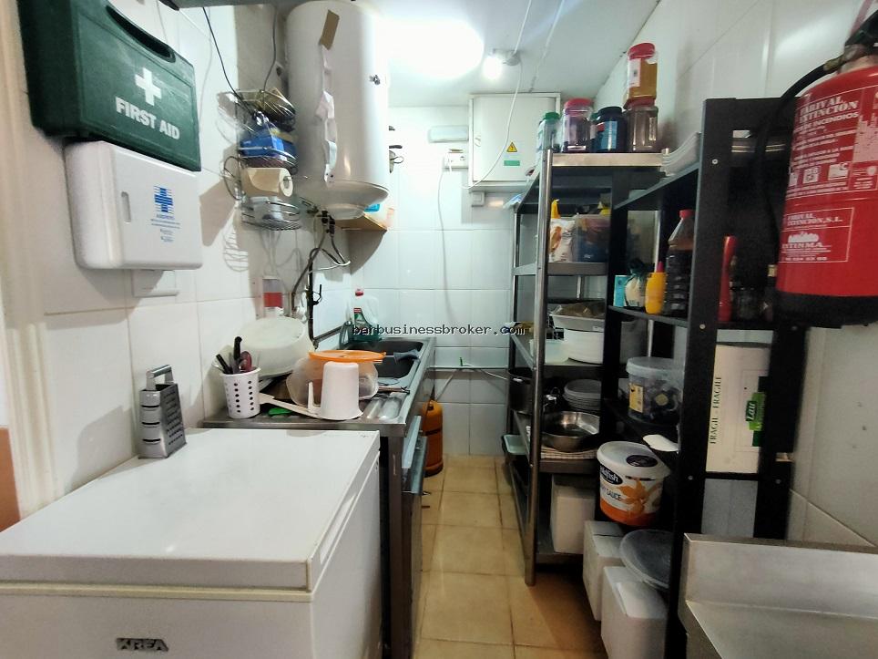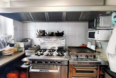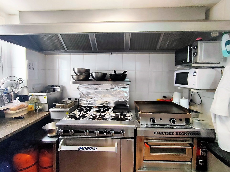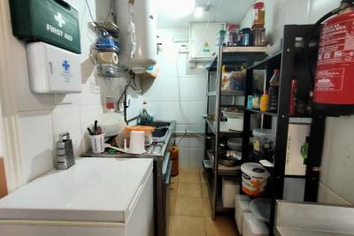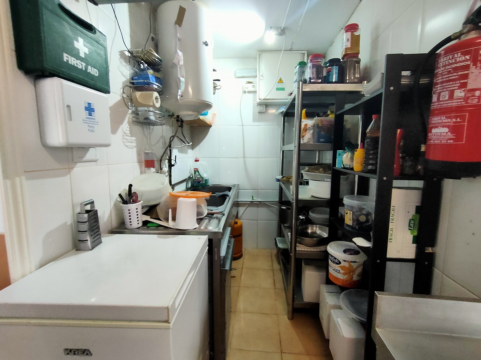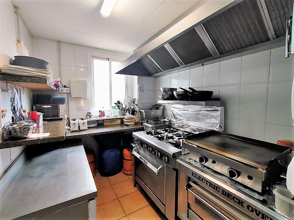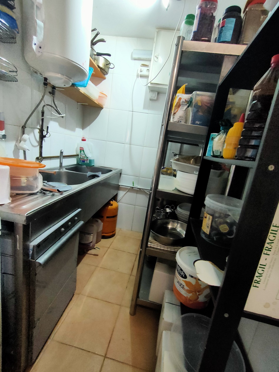 Это небольшое место площадью 50 квадратных метров, где хорошо используются все помещения, в нем есть кухня с дымоудалением с 4 промышленными пожарными горелками, духовкой и утюгом, также есть небольшая складская площадь.