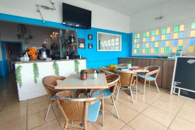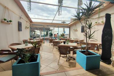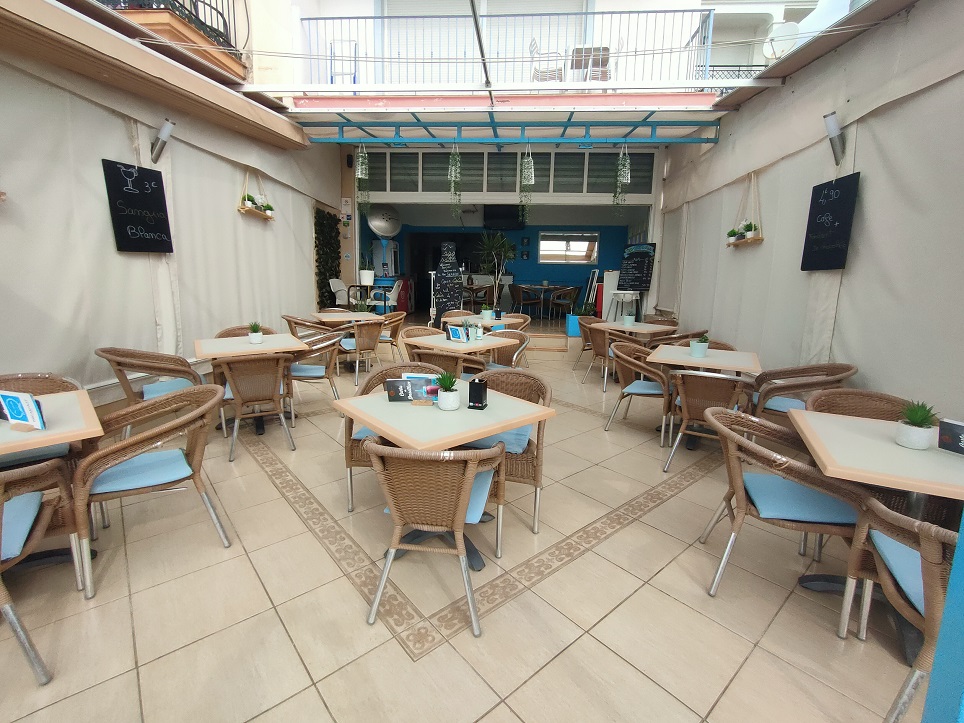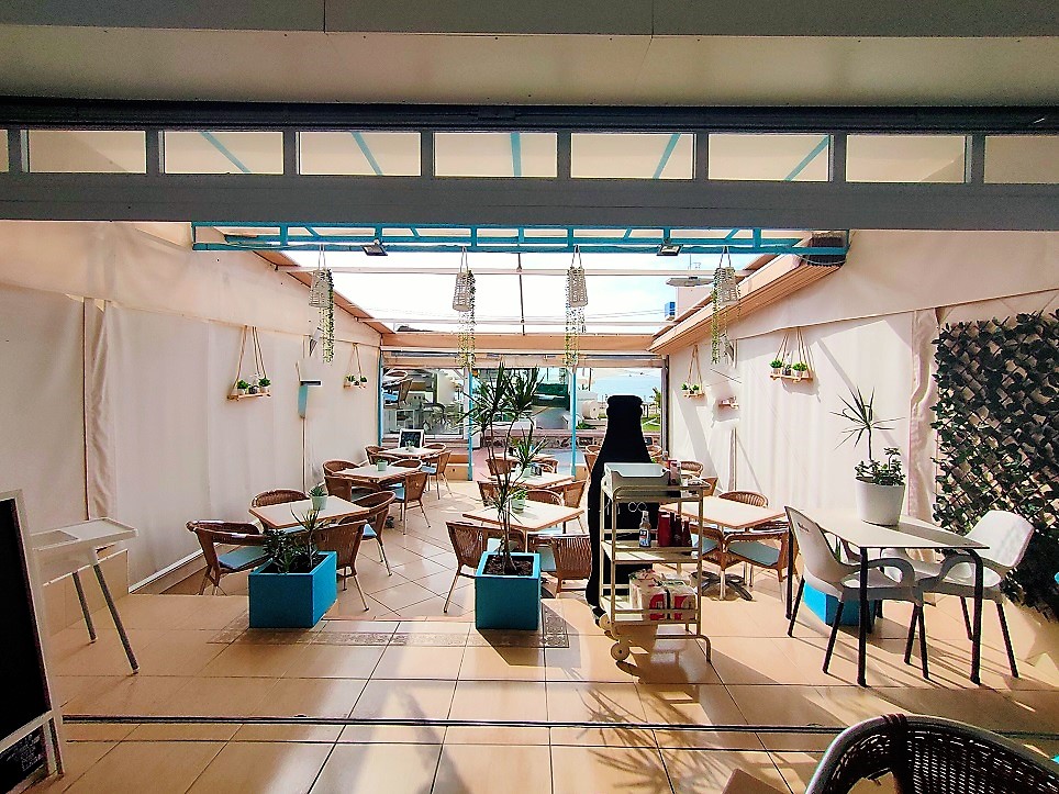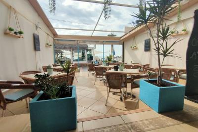 Перед этим кафе-баром есть терраса вместимостью на 10 столов, терраса имеет ограждение, которое можно открыть, чтобы насладиться солнцем или полностью закрыть его в случае ветреных или дождливых дней.